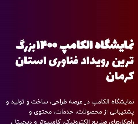 بیست و ششمین نمایشگاه بین المللی الکامپ استان کرمان در تاریخ ۱۴۰۰/۱۰/۲۱ تا تاریخ ۱۴۰۰/۱۰/۲۴ در محل برگزاری نمایشگاه های دائمی جنوب شرق برگزار شد.